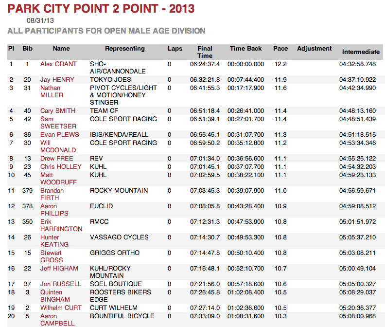 I emptied what was left in my tank up the road and crossed the line in 30th place at 5 hours 26 minutes. Having lost 15-20 min to flat tires I was really happy with my time. I rode much better than last year and had some in the tank at the end of the race. Goals accomplished.