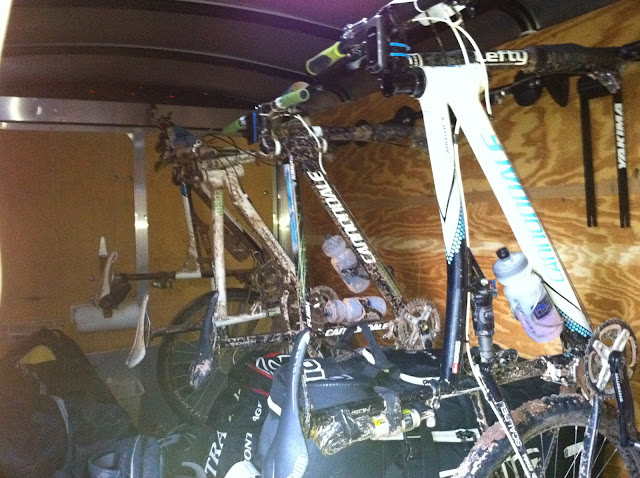 | Fancy bikes get the team trailer for the ride home. Not sure how Davis' bike made it in there over mine... |